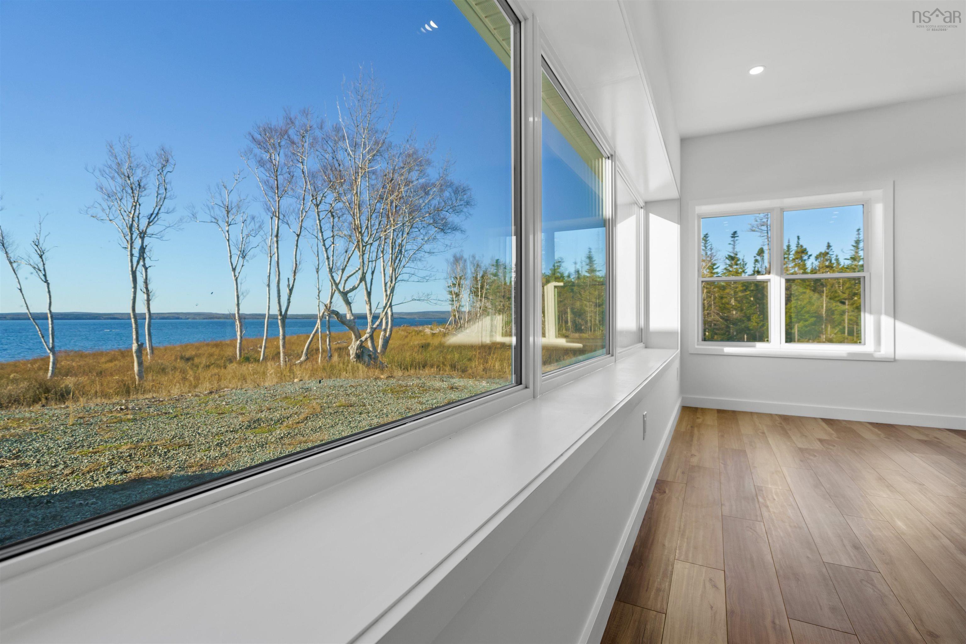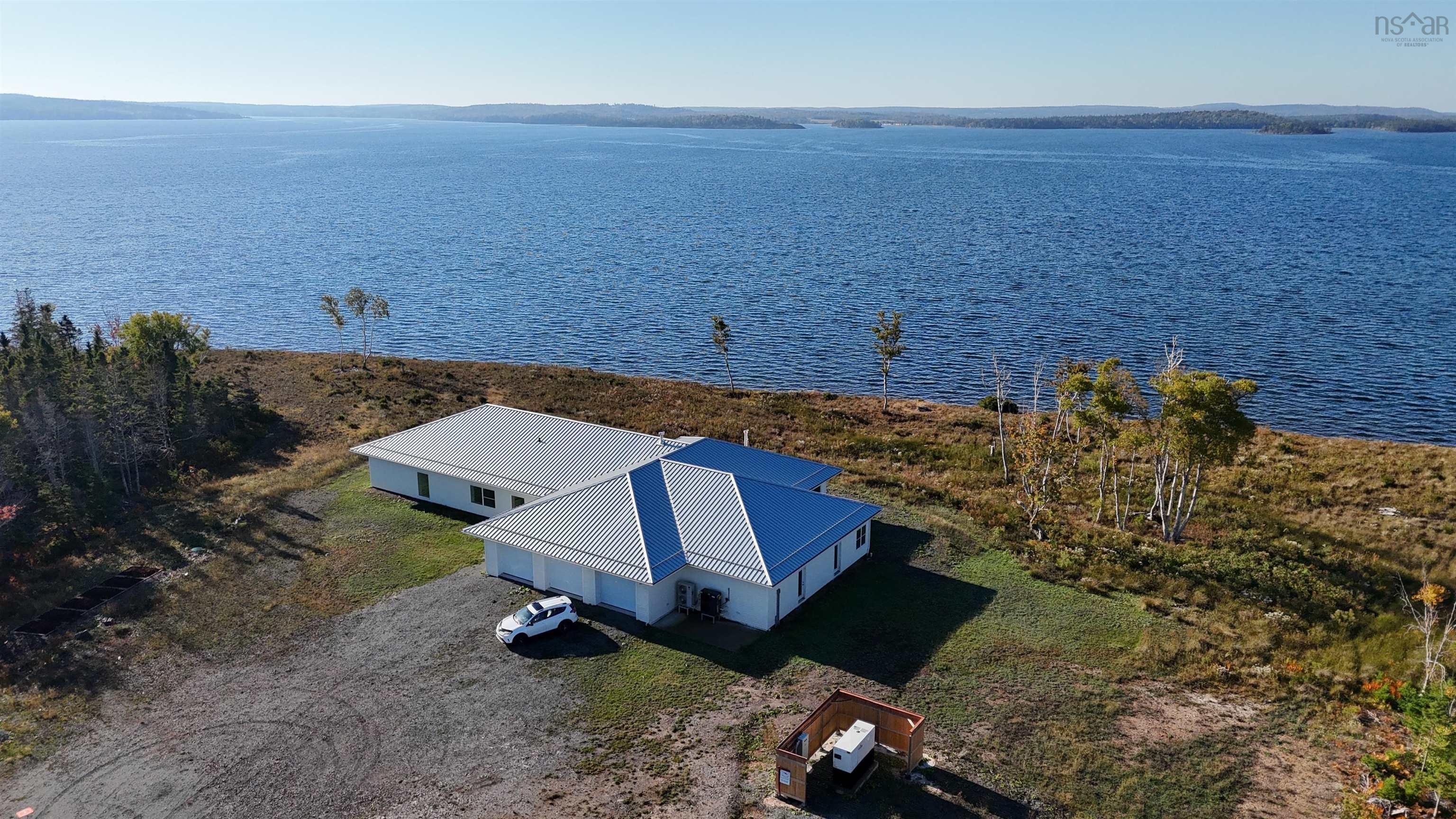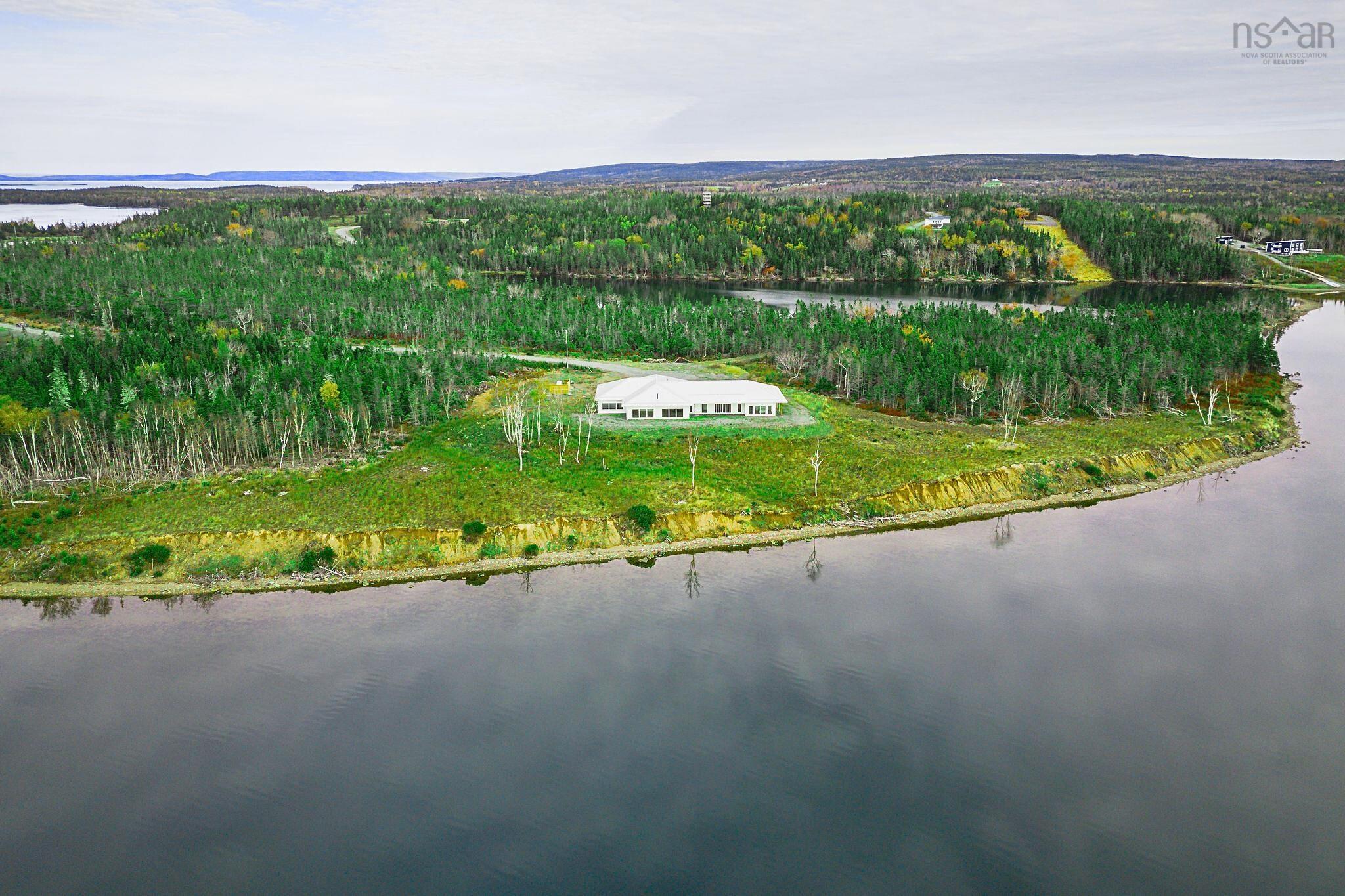 An exclusive private lakefront estate with 1.26 km of pristine Bras dOr Lake shoreline and a small private sandy beach. This custom-built 5,000 sq ft luxury bungalow, completed in 2025, offers effortless one-level living and breathtaking lake views from every window. Set on 35.5 acres, subdivided into 12 waterfront parcels, the property ensures exceptional privacy. Ideally located 40 minutes from Sydney and 45 minutes from Port Hawkesbury, near three renowned golf courses. The bright, modern open-concept design features one of Cape Breton Islands most spacious entertainment kitchen–living room areas, perfectly designed for hosting, relaxing, and enjoying uninterrupted lake views. Additional highlights include an attached triple-car garage with direct access, Kuuma indoor sauna, and Generac RD048kW generator. A rare Bras dOr Lake offering.