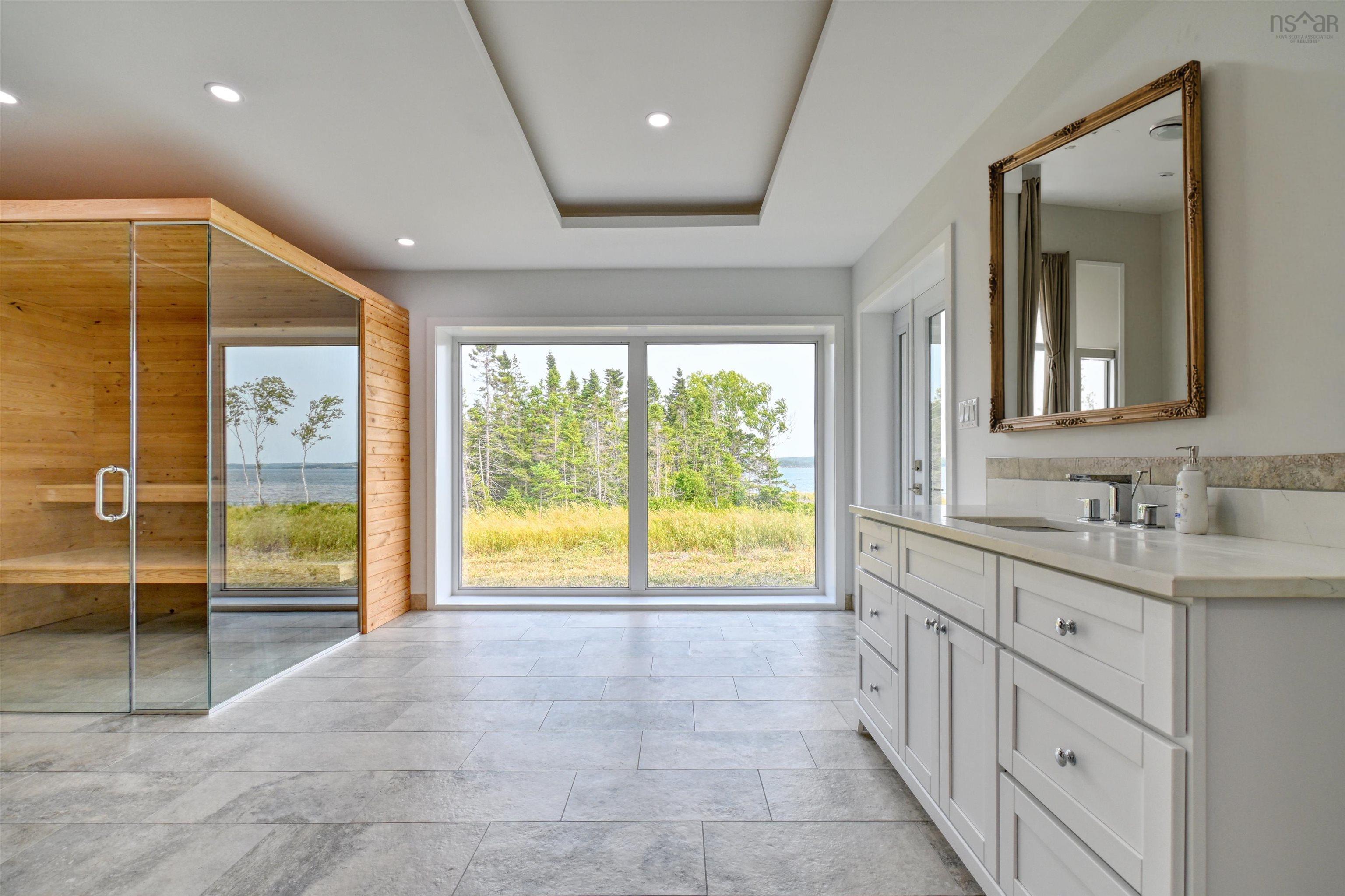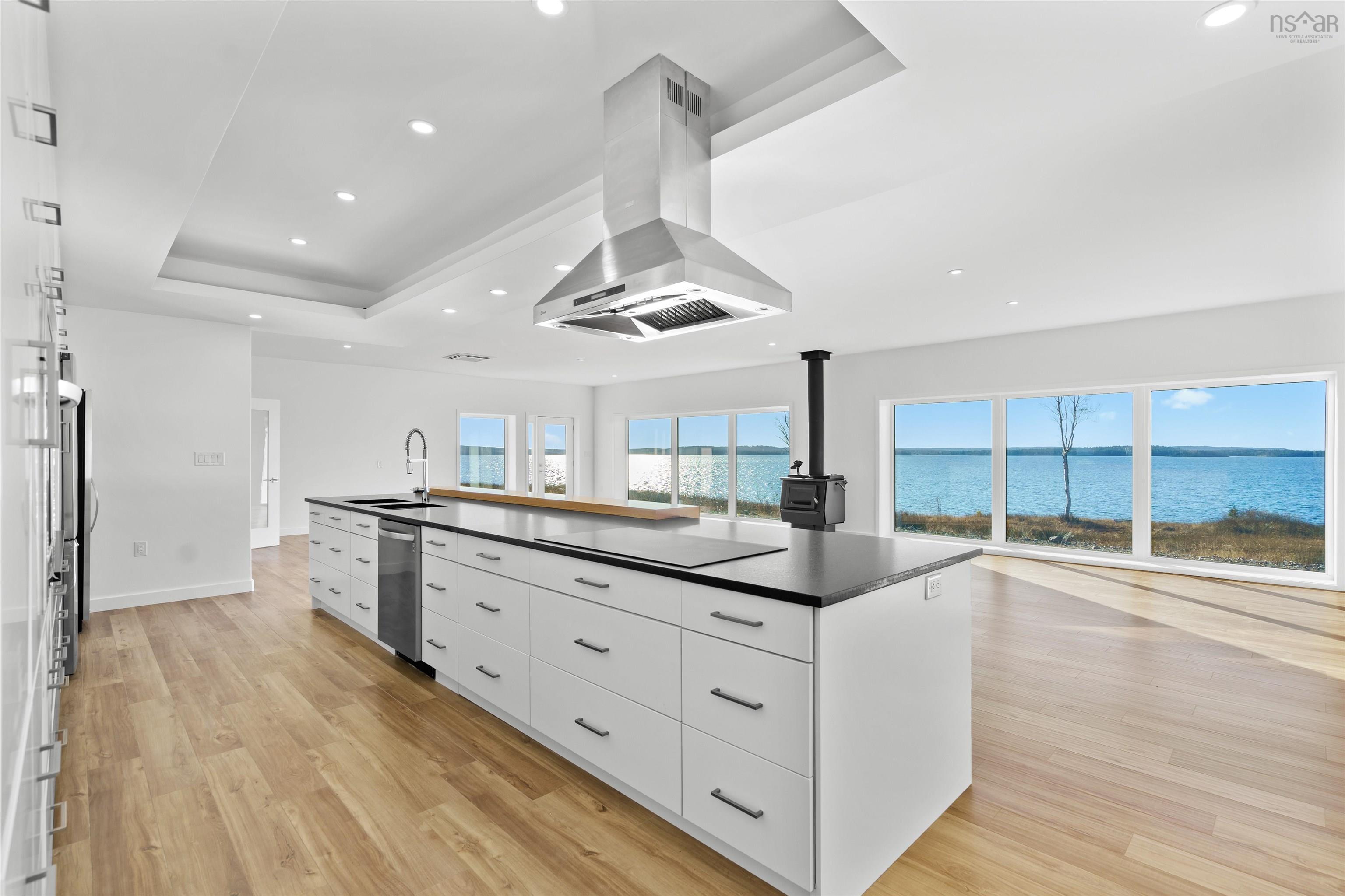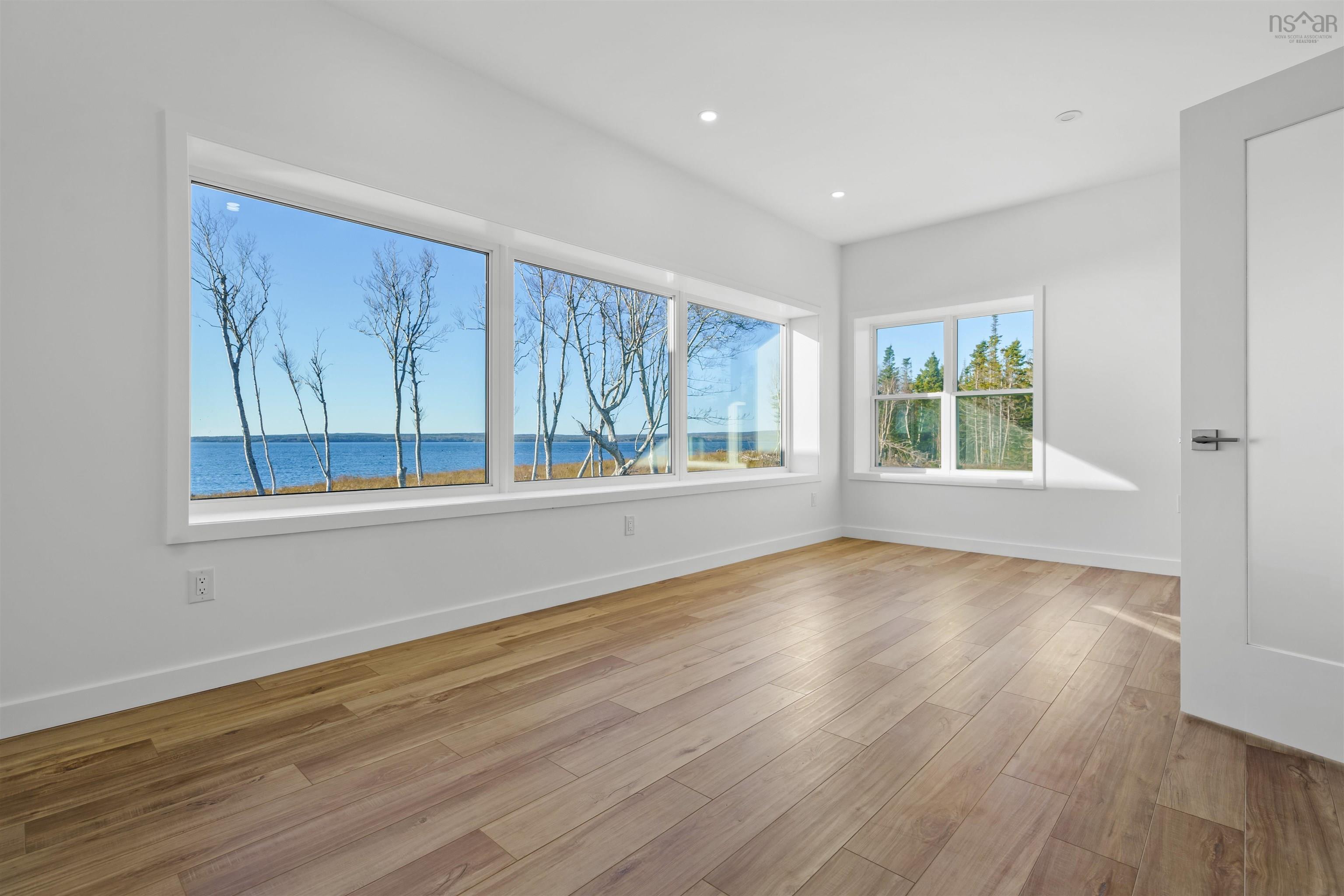 An exclusive private lakefront estate with 1.26 km of pristine Bras dOr Lake shoreline and a small private sandy beach. This custom-built 5,000 sq ft luxury bungalow, completed in 2025, offers effortless one-level living and breathtaking lake views from every window. Set on 35.5 acres, subdivided into 12 waterfront parcels, the property ensures exceptional privacy. Ideally located 40 minutes from Sydney and 45 minutes from Port Hawkesbury, near three renowned golf courses. The bright, modern open-concept design features one of Cape Breton Islands most spacious entertainment kitchen–living room areas, perfectly designed for hosting, relaxing, and enjoying uninterrupted lake views. Additional highlights include an attached triple-car garage with direct access, Kuuma indoor sauna, and Generac RD048kW generator. A rare Bras dOr Lake offering.