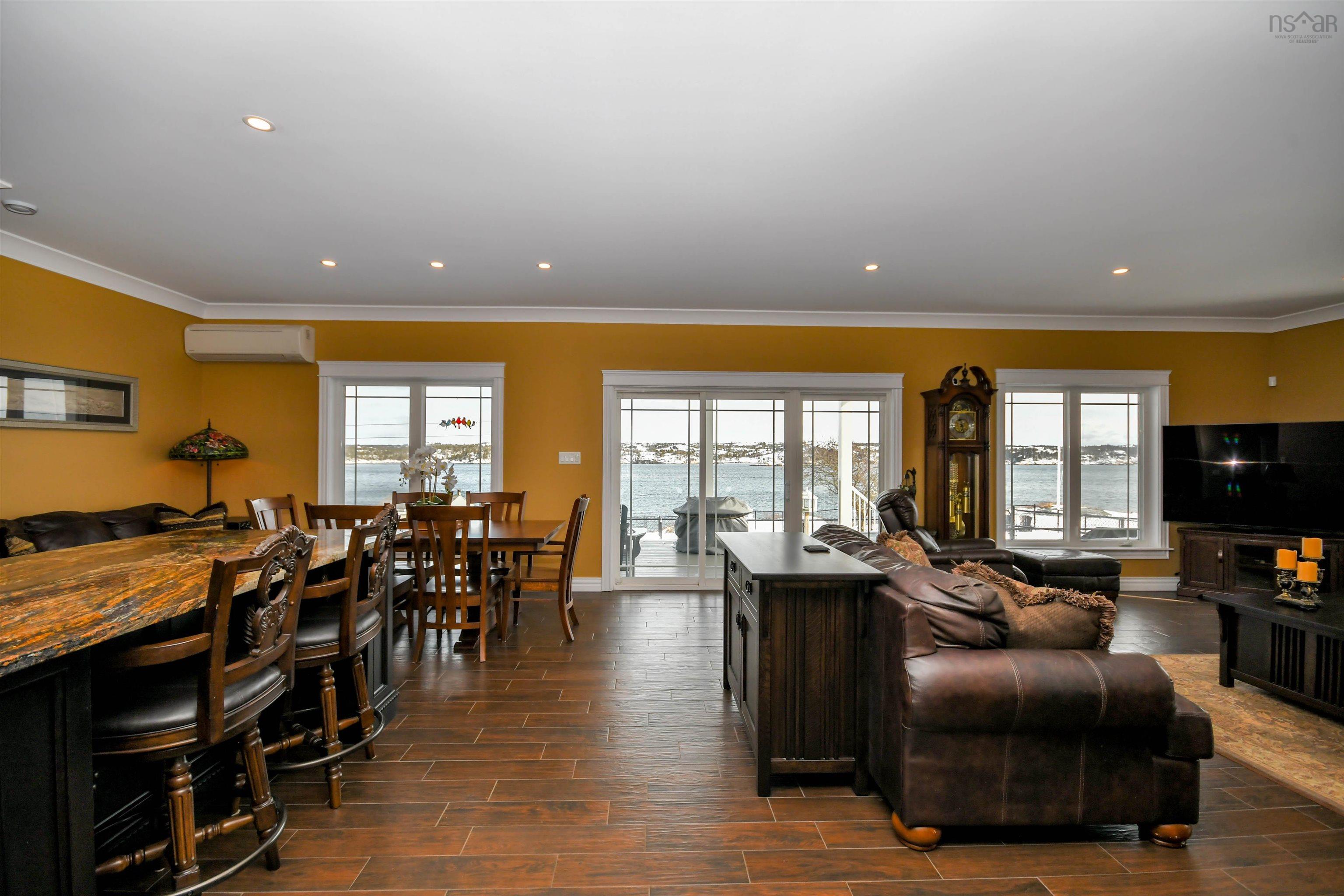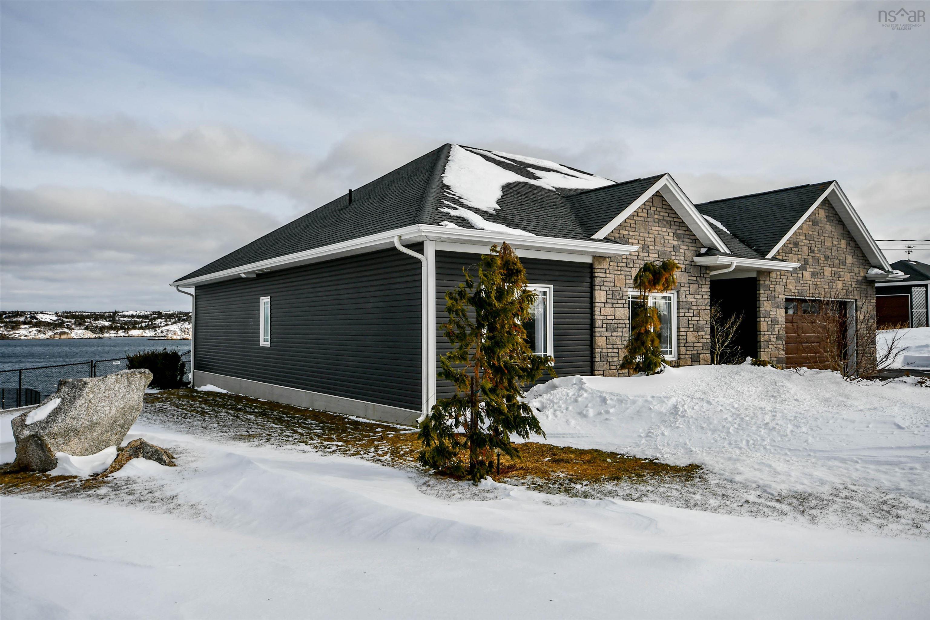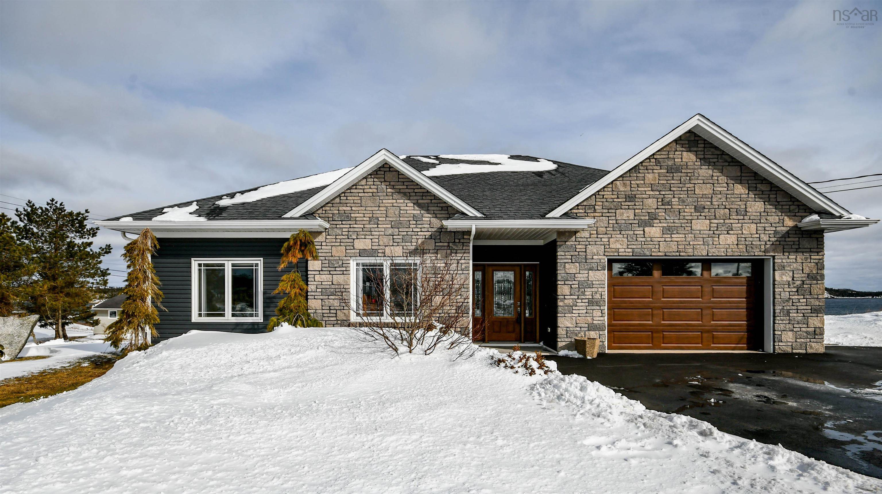 Prepare to fall in love with this deep anchorage, gorgeous ocean front bungalow only 20 minutes from Bayers Lake Park. From the foyer you'll find the spacious kitchen with beautiful custom cabinetry and granite countertops open to the dining room and living room with propane fireplace. Take in the expansive ocean views from the many windows and watch the Bluenose sail by. From here step out onto the covered composite deck where you'll find the fenced yard, firepit and steps down to your ocean access. The primary bedroom has a lovely tray ceiling, walk-in closet and full en-suite bath with double sinks with granite counters and you can take in the ocean views from your bed! Two spacious bedrooms, full bathroom, laundry room and double attached garage complete this home. Extras like 9 ft ceilings, ductless heat pumps, in floor heat, generlink connection, separate wired/heated single detached garage and wired/heated shed with greenhouse. 20x12 foot pergola. In addition, this property has access to the public boat launch, government wharf, kayaking and sandy beach all within three minutes. This property is one of a kind!"