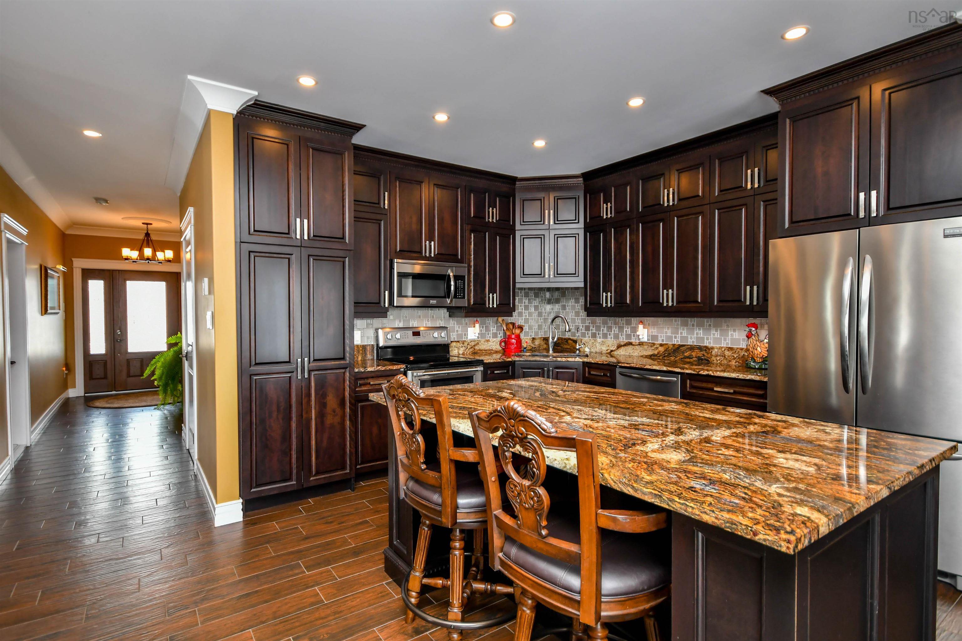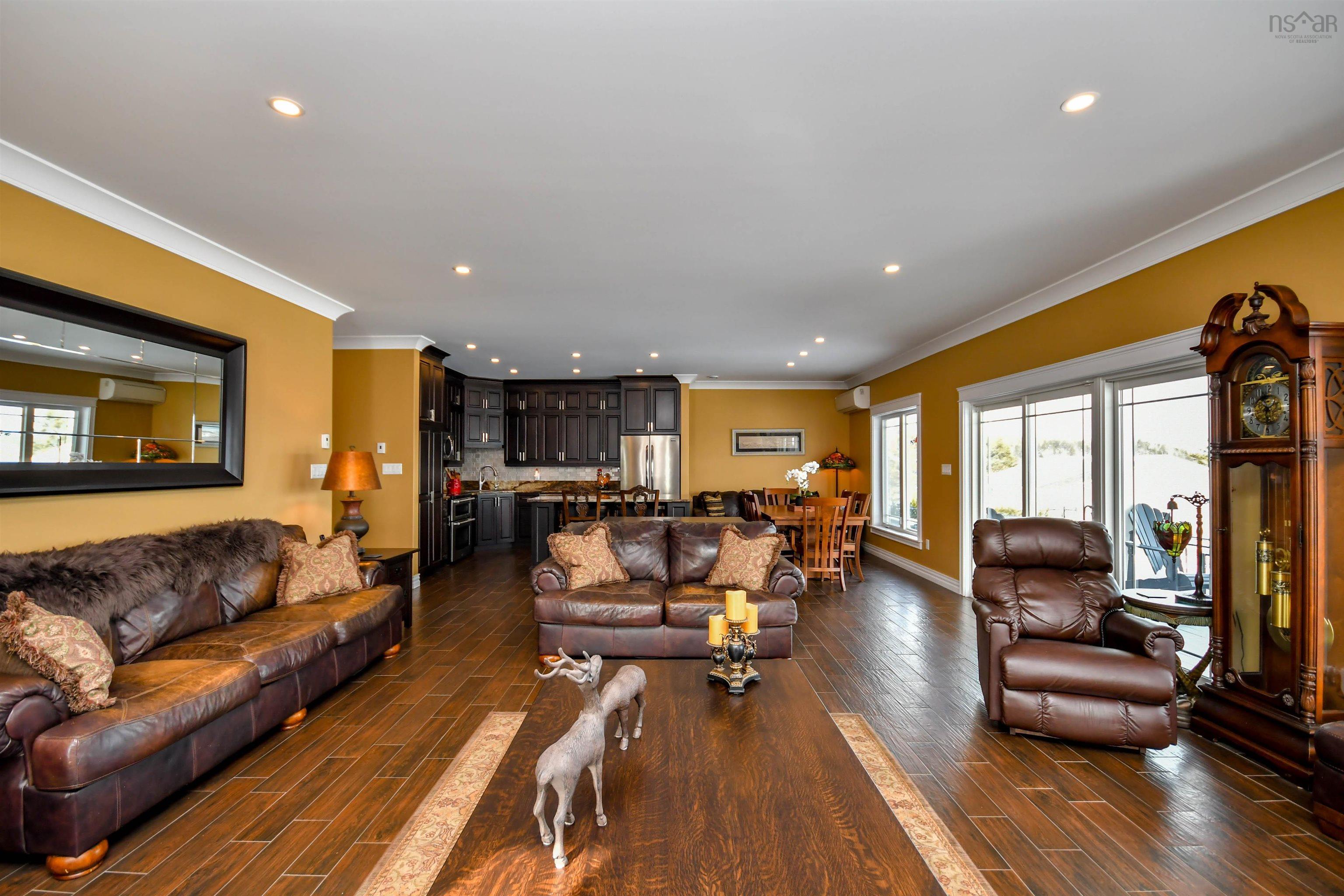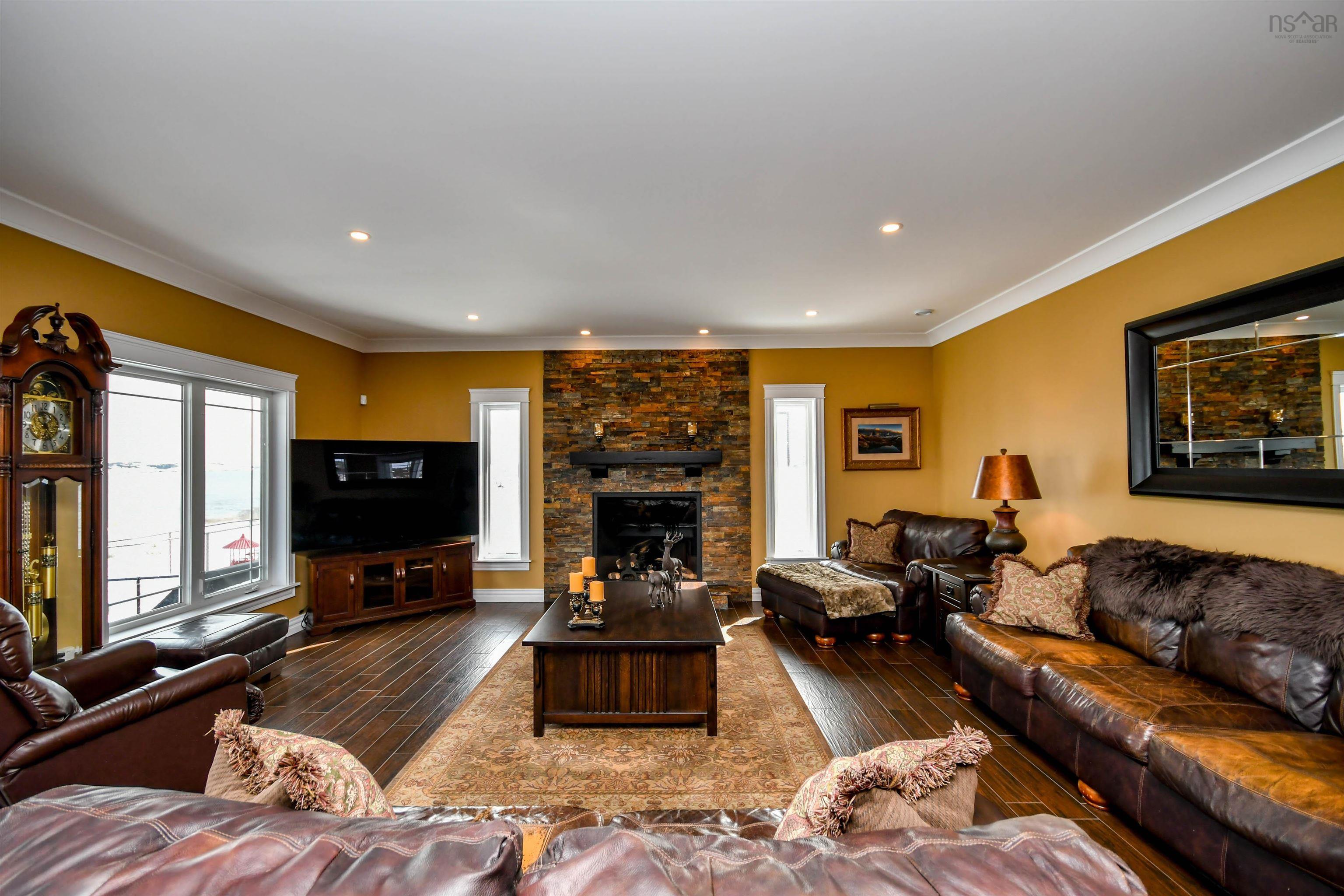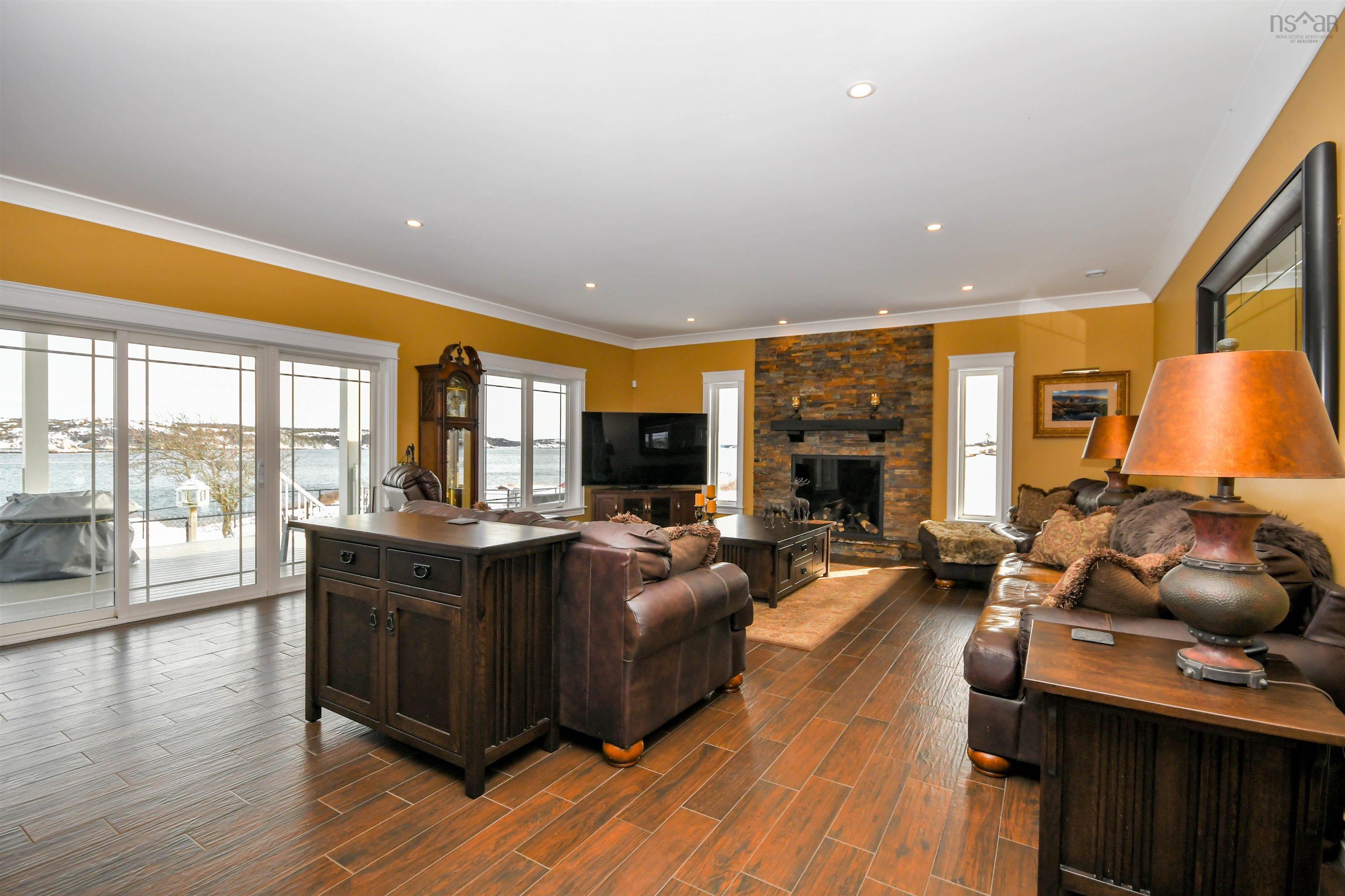 Prepare to fall in love with this deep anchorage, gorgeous ocean front bungalow only 20 minutes from Bayers Lake Park. From the foyer you'll find the spacious kitchen with beautiful custom cabinetry and granite countertops open to the dining room and living room with propane fireplace. Take in the expansive ocean views from the many windows and watch the Bluenose sail by. From here step out onto the covered composite deck where you'll find the fenced yard, firepit and steps down to your ocean access. The primary bedroom has a lovely tray ceiling, walk-in closet and full en-suite bath with double sinks with granite counters and you can take in the ocean views from your bed! Two spacious bedrooms, full bathroom, laundry room and double attached garage complete this home. Extras like 9 ft ceilings, ductless heat pumps, in floor heat, generlink connection, separate wired/heated single detached garage and wired/heated shed with greenhouse. 20x12 foot pergola. In addition, this property has access to the public boat launch, government wharf, kayaking and sandy beach all within three minutes. This property is one of a kind!"