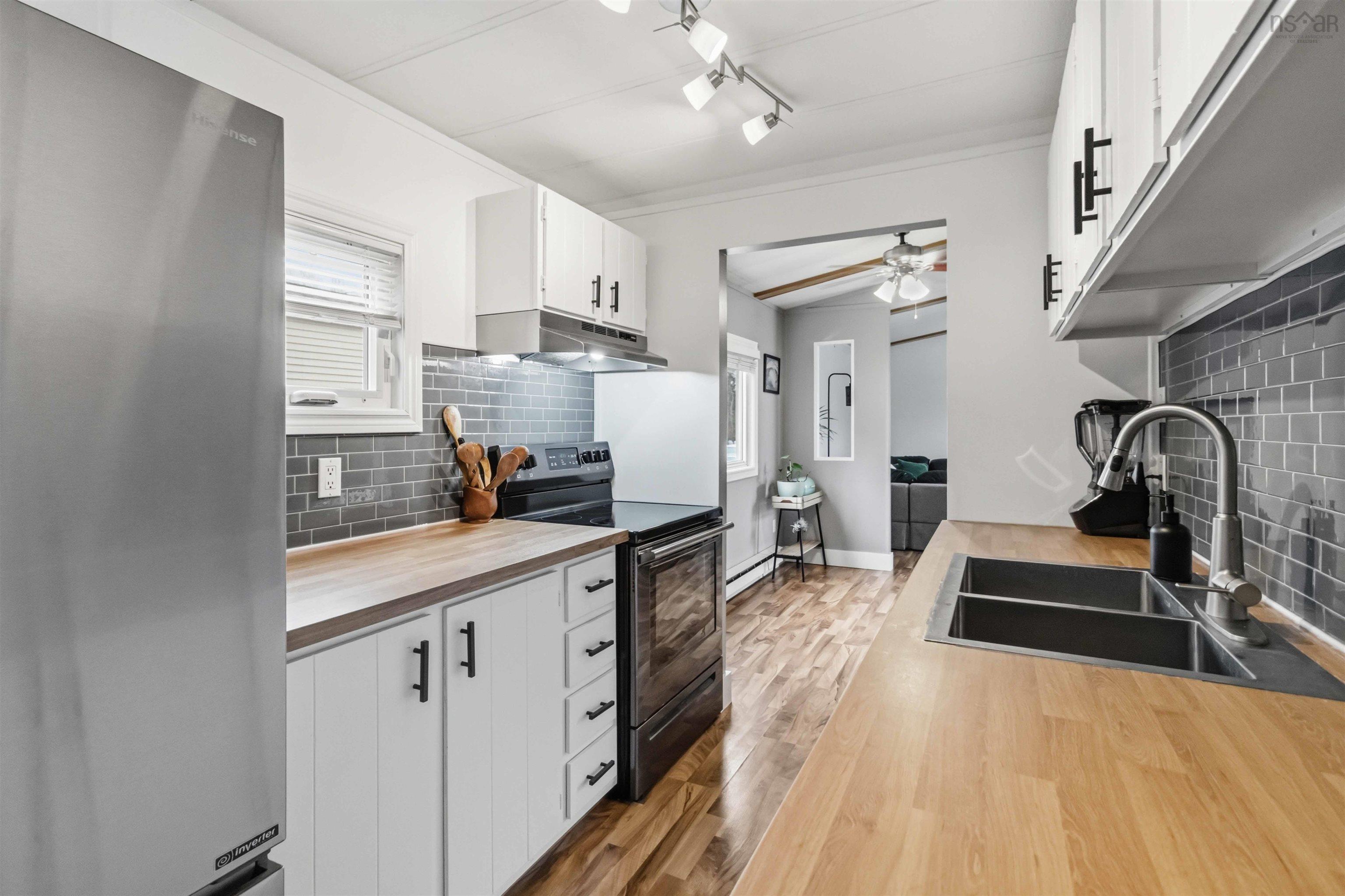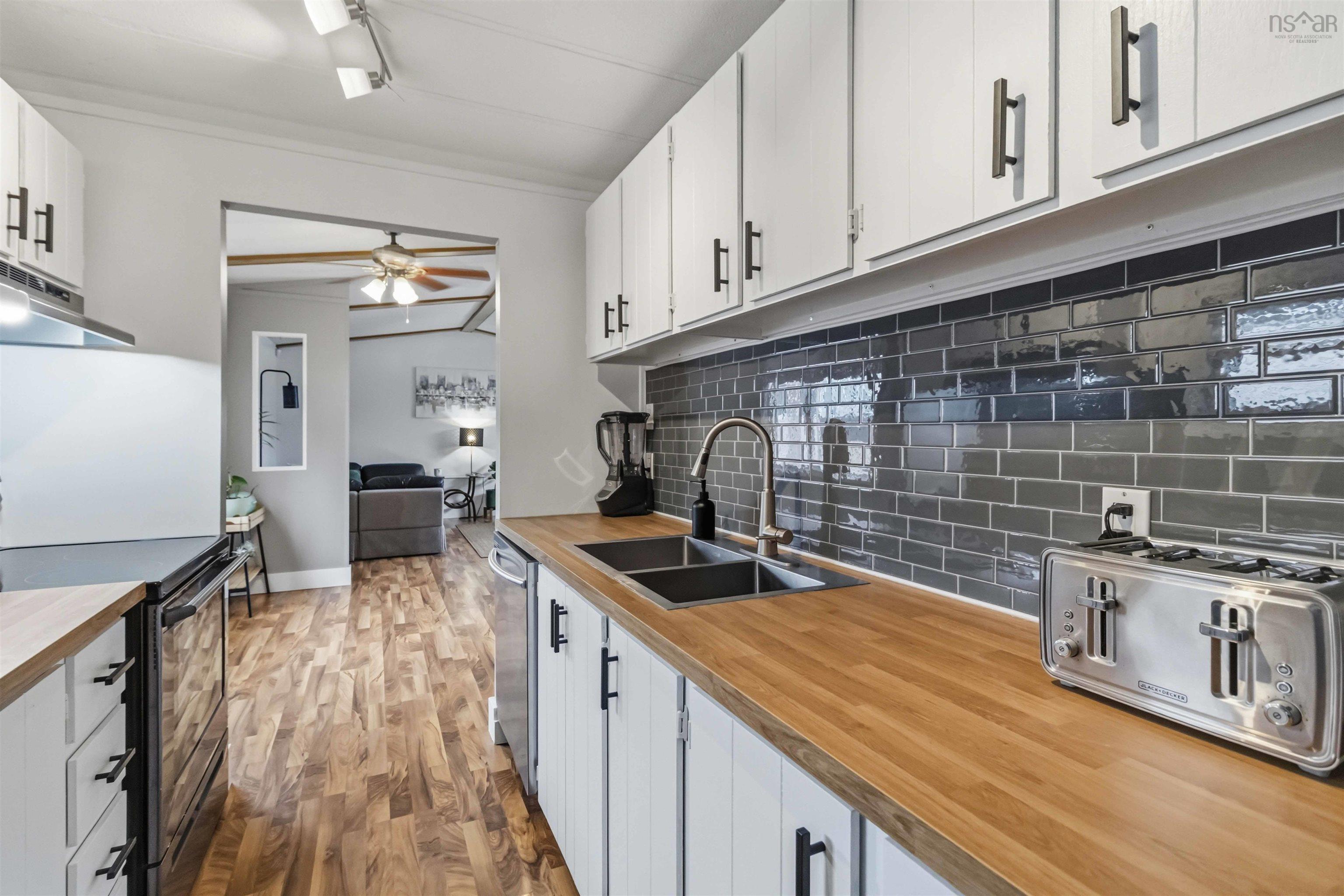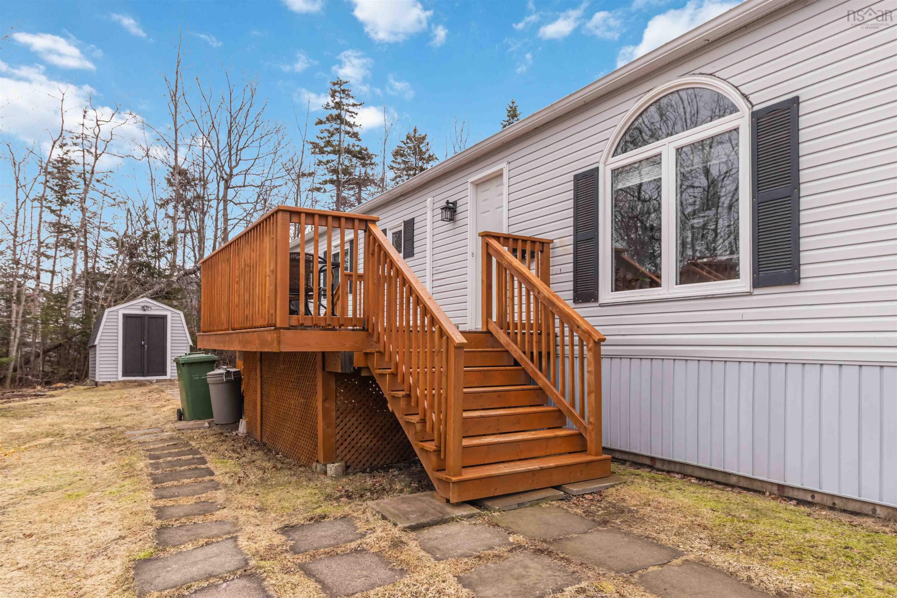 Welcome to this well-maintained and nicely updated mini home in the sought-after Century Park community in the Millwood area. From the moment you step inside, you’ll be impressed by the bright, spacious living room featuring vaulted ceilings withbeautiful wood accents, creating a warm and inviting atmosphere. This versatile space offers room for a home office or playarea, while the kitchen flows seamlessly into a generous dining area—perfect for hosting family and friends.The thoughtful split-bedroom layout provides added privacy, and the main bathroom has been tastefully updated. The home ispainted throughout in neutral tones, making it easy to add your own style. Recent improvements include new heat pumps (2022), a new deck (2024), updated bedroom floorings (2019), a refreshed kitchen with new countertops and double sink (2025), and newshingles on the shed (2024), along with fresh paint throughout. Outside, enjoy a paved driveway, large deck, storage shed, and a private backyard backing onto lush trees. A galvanized meshbarrier installed around the base of the home—buried one foot into the ground—adds valuable protection against rodents, amajor bonus for mobile home living.Move-in ready and located in a great community, this home offers comfort, updates, and peace of mind. Book your viewing today.