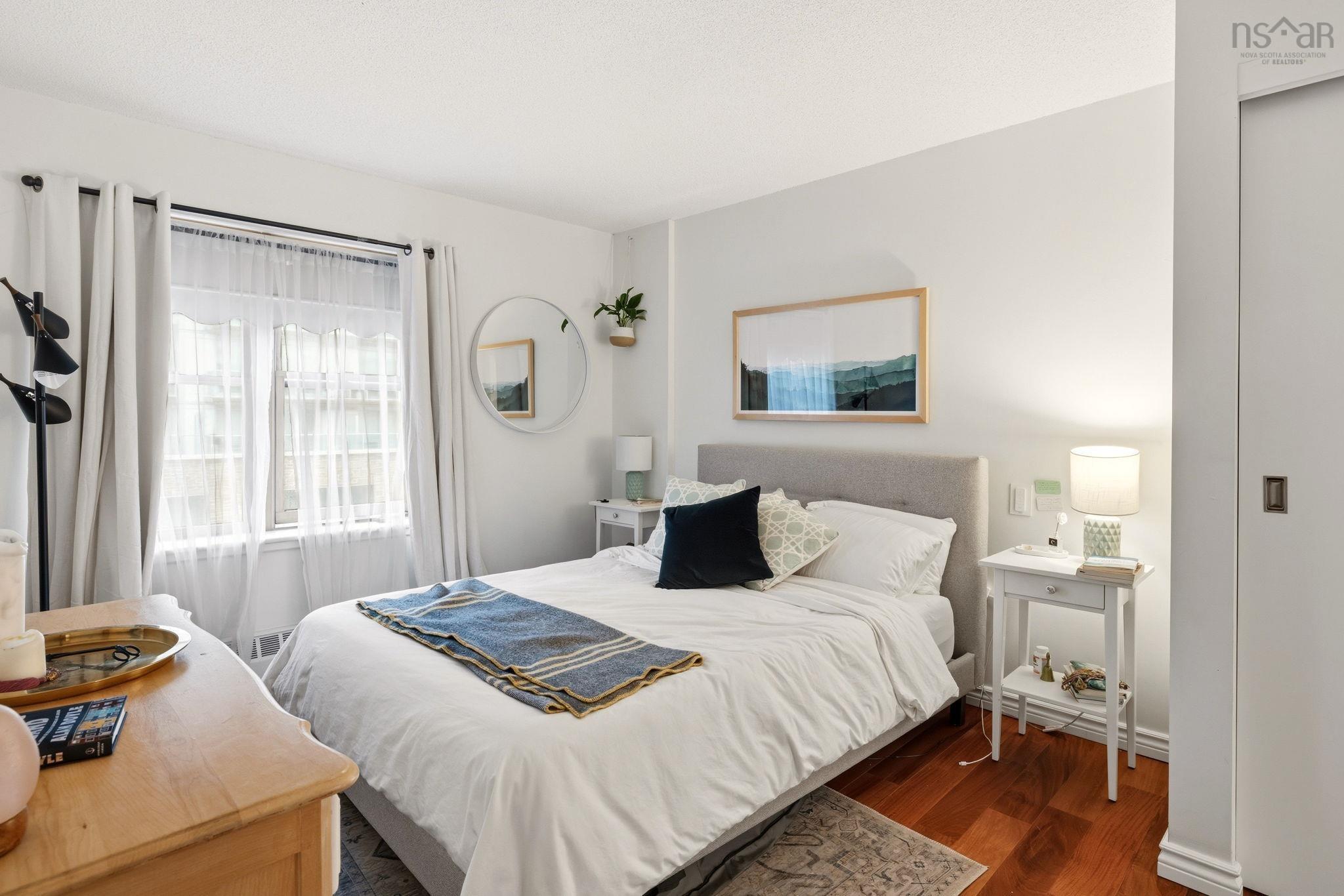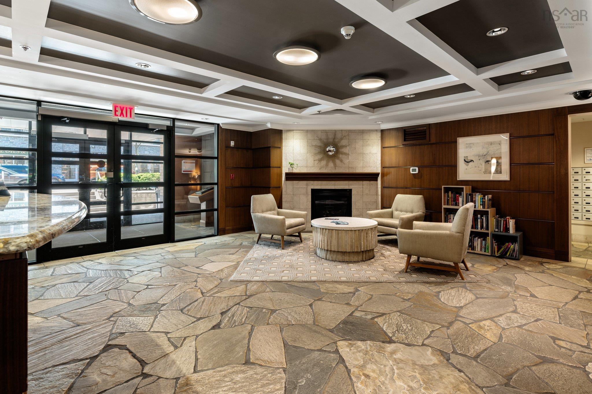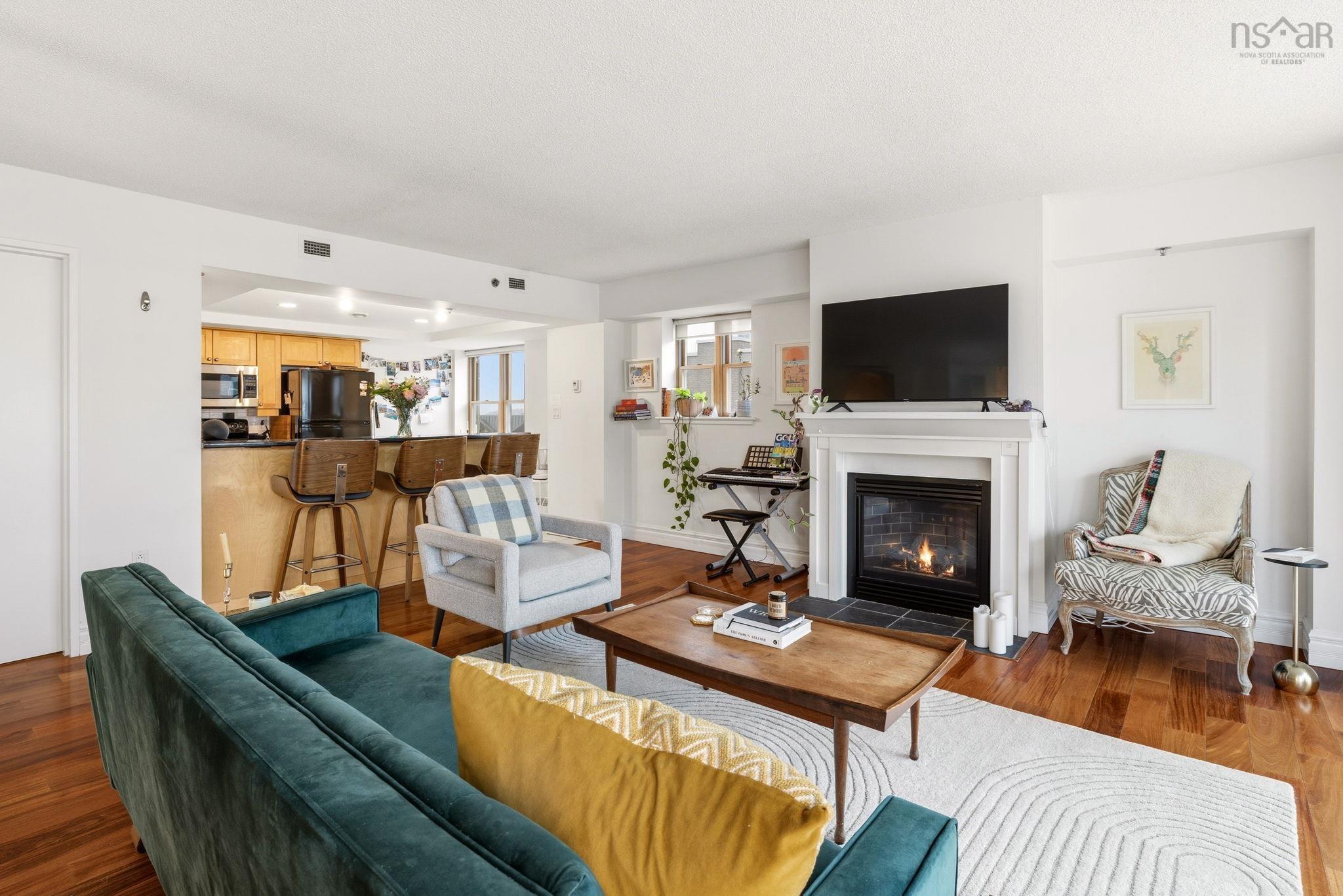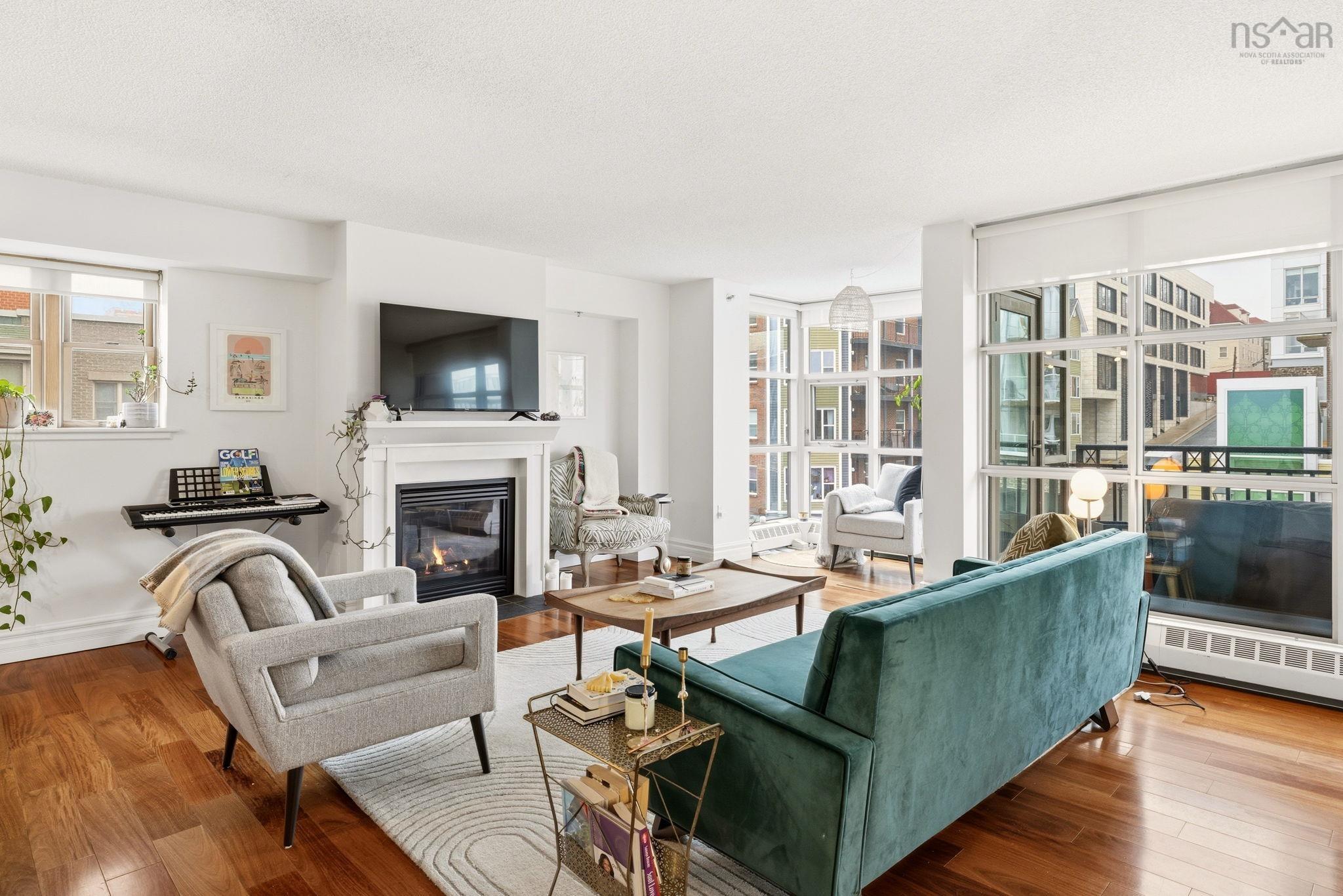 Experience the ultimate downtown lifestyle at Bishop’s Landing, one of the most iconic buildings on the Halifax waterfront. This 1,179-square-foot corner condo is flooded with natural light from floor-to-ceiling windows, creating a bright and inviting atmosphere. The open-concept layout includes a spacious primary bedroom with a large ensuite and double closets, a second bedroom currently used as an office, and a large kitchen equipped with plenty of storage. Enjoy your morning coffee on the patio or relax by the natural gas fireplace in a home that comes fully equipped with ducted air conditioning, in-unit laundry, and a large utility room. While this fourth-floor unit overlooks the street side of the complex, you are perfectly positioned just steps from the harbor's best dining, shopping, and boardwalk strolls. Residents enjoy premium building perks like an outdoor pool and a dedicated parking space, with the added benefit of heat being included in the condo fees. It’s a rare opportunity for young professionals or downsizers to secure a spot in a premier waterfront development. If you’re ready for a high-end move that puts you in the center of it all, this corner unit is a must-see.
