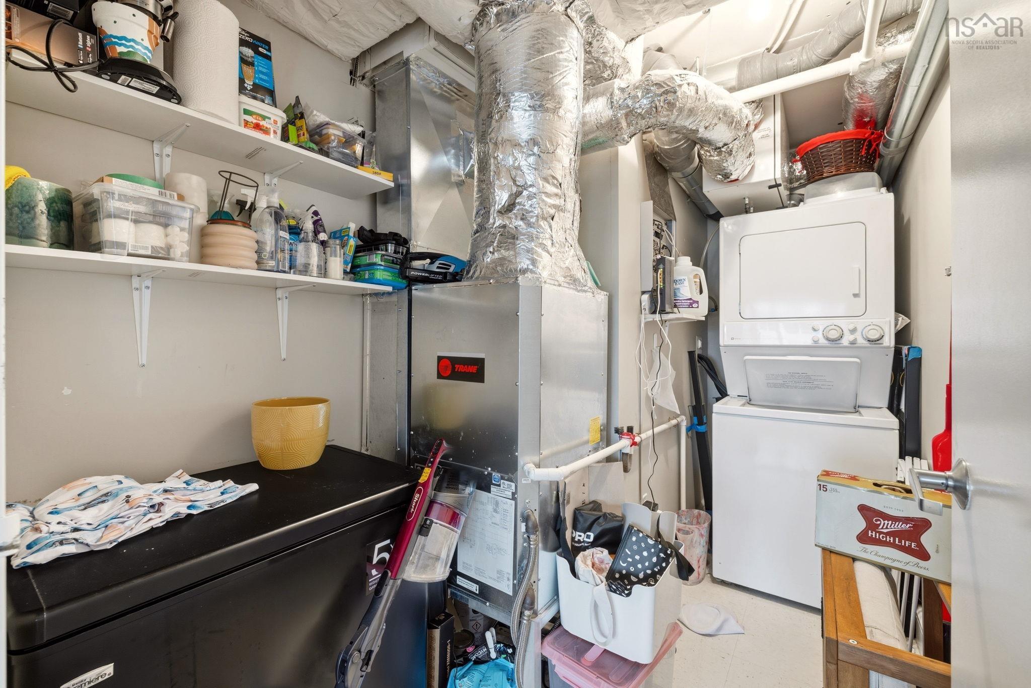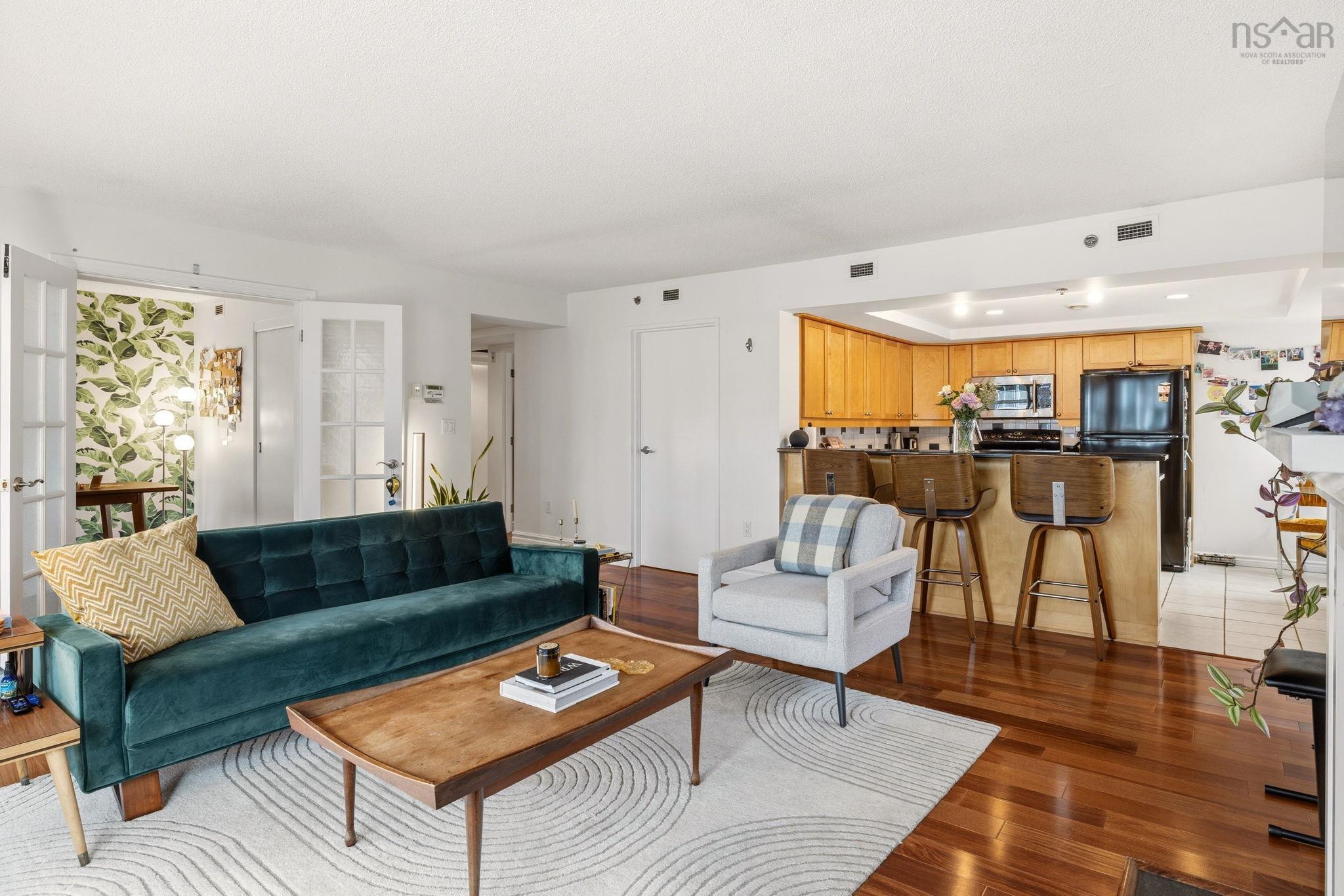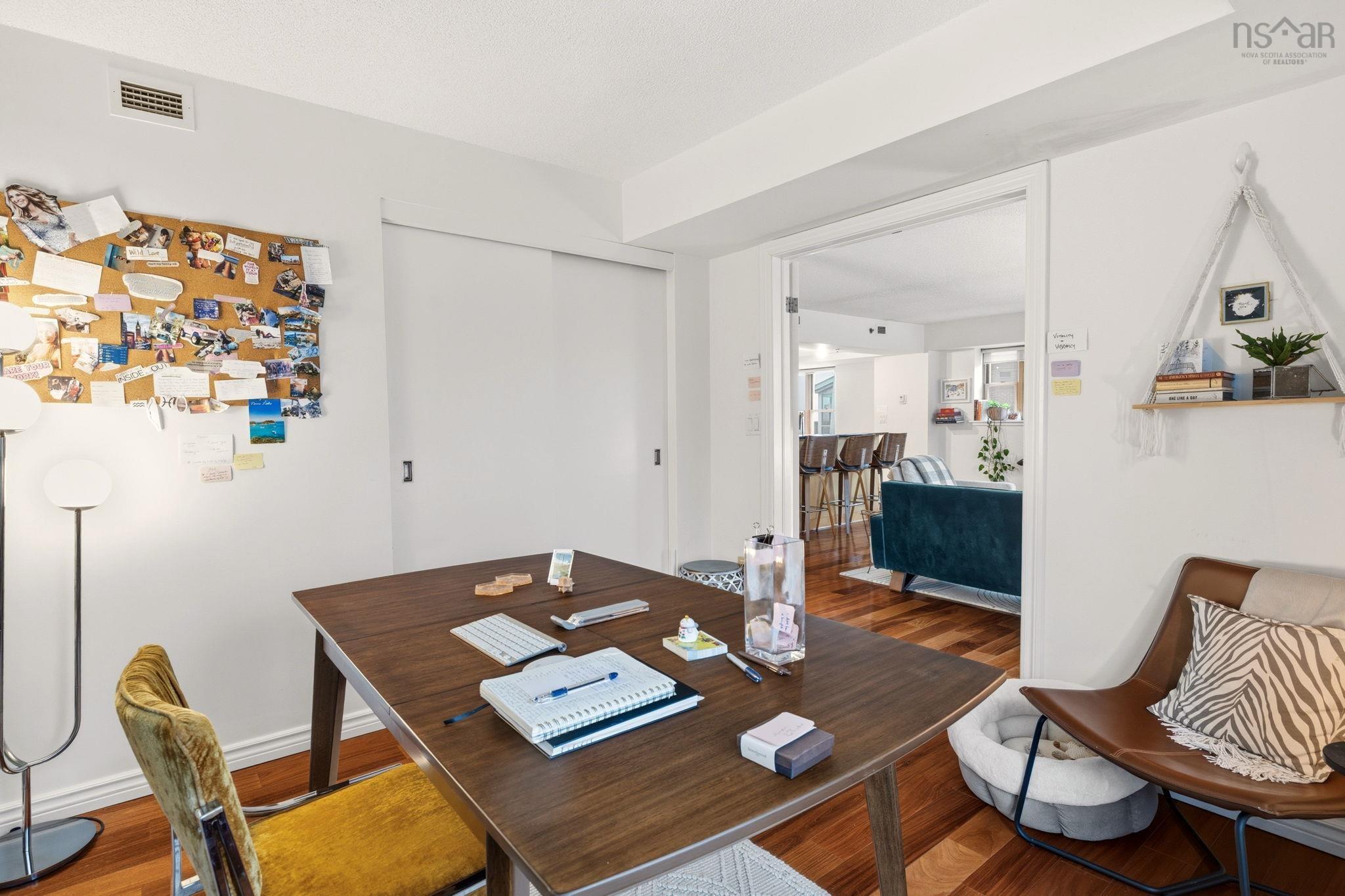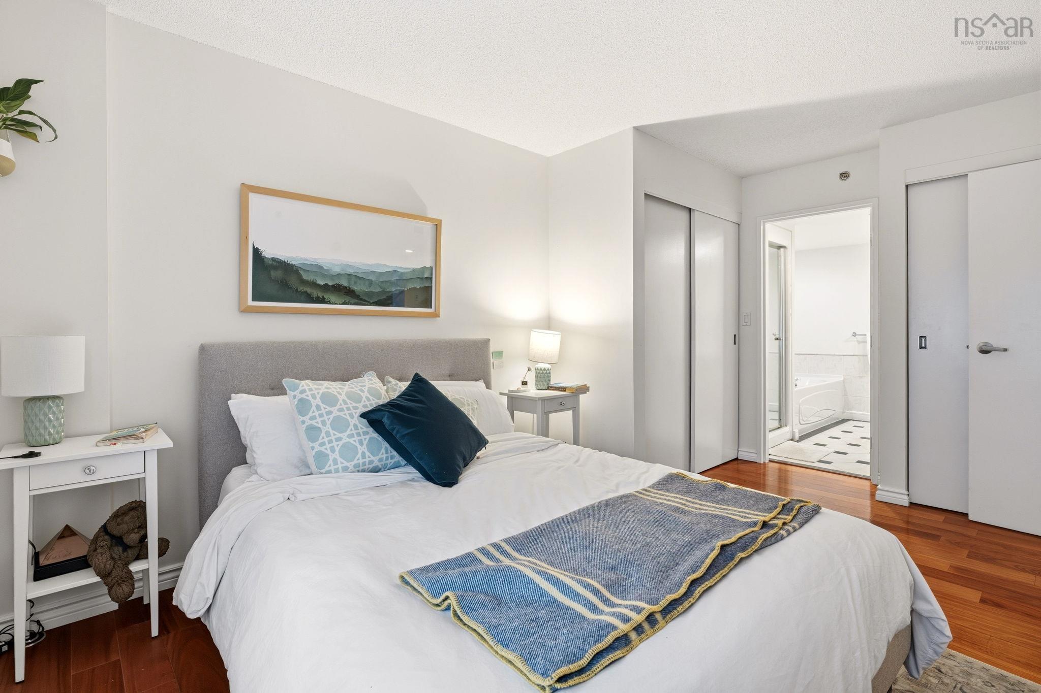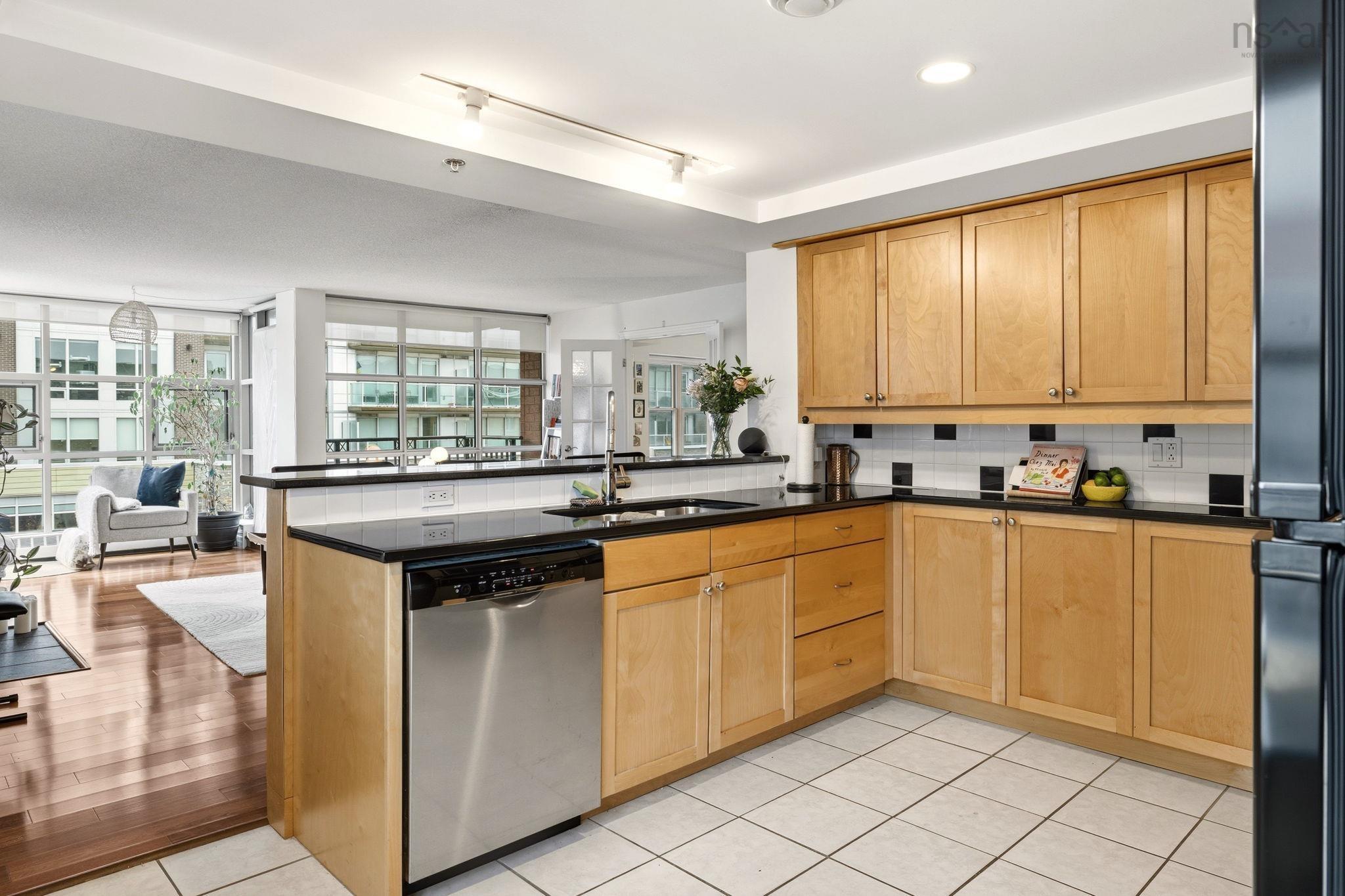 Experience the ultimate downtown lifestyle at Bishop’s Landing, one of the most iconic buildings on the Halifax waterfront. This 1,179-square-foot corner condo is flooded with natural light from floor-to-ceiling windows, creating a bright and inviting atmosphere. The open-concept layout includes a spacious primary bedroom with a large ensuite and double closets, a second bedroom currently used as an office, and a large kitchen equipped with plenty of storage. Enjoy your morning coffee on the patio or relax by the natural gas fireplace in a home that comes fully equipped with ducted air conditioning, in-unit laundry, and a large utility room. While this fourth-floor unit overlooks the street side of the complex, you are perfectly positioned just steps from the harbor's best dining, shopping, and boardwalk strolls. Residents enjoy premium building perks like an outdoor pool and a dedicated parking space, with the added benefit of heat being included in the condo fees. It’s a rare opportunity for young professionals or downsizers to secure a spot in a premier waterfront development. If you’re ready for a high-end move that puts you in the center of it all, this corner unit is a must-see.